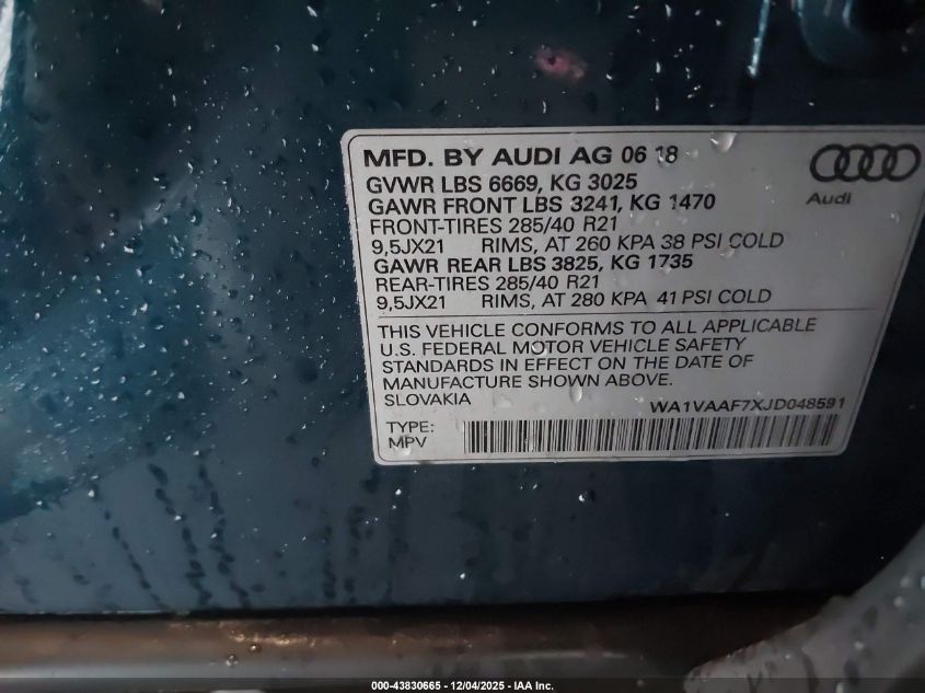 Цвет СинийЦилиндры 6Привод Полный приводVIN WA1VAAF7XJD048591Состояние СтационарноПовреждения Передняя или задняя AutoRIA