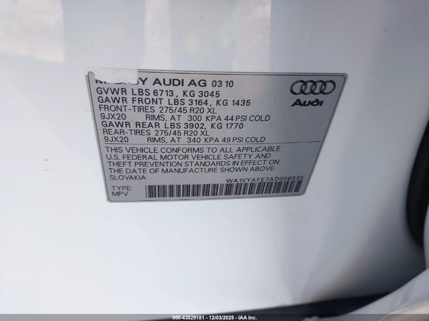 2010 AUDI Q7 PRESTIGE