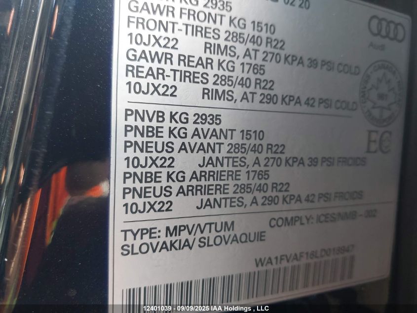 Цвет ЧерныйЦилиндры 6Привод Полный приводVIN WA1FVAF16LD018947Состояние ЗаводитсяПовреждения Левая сторонаДата аукциона 2025-12-08 AutoRIA