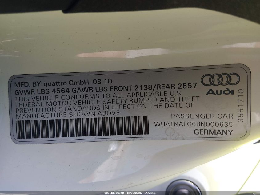 2011 AUDI R8 2011 року Бензин, 5.2, Полный привод, vin - WUATNAFG6BN000635 из США