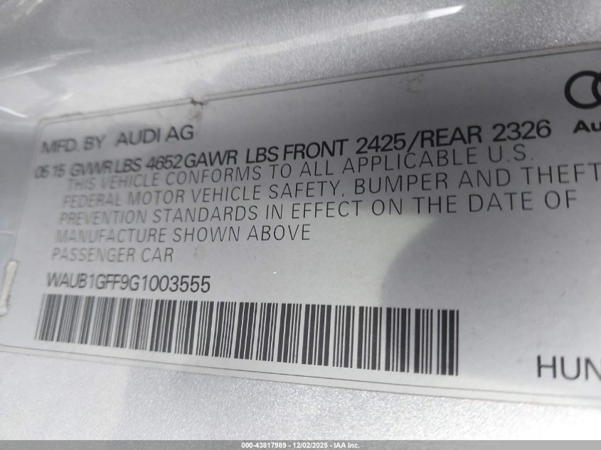 2016 AUDI S3 2016 року Бензин, 2.0, Полный привод, vin - WAUB1GFF9G1003555 из США
