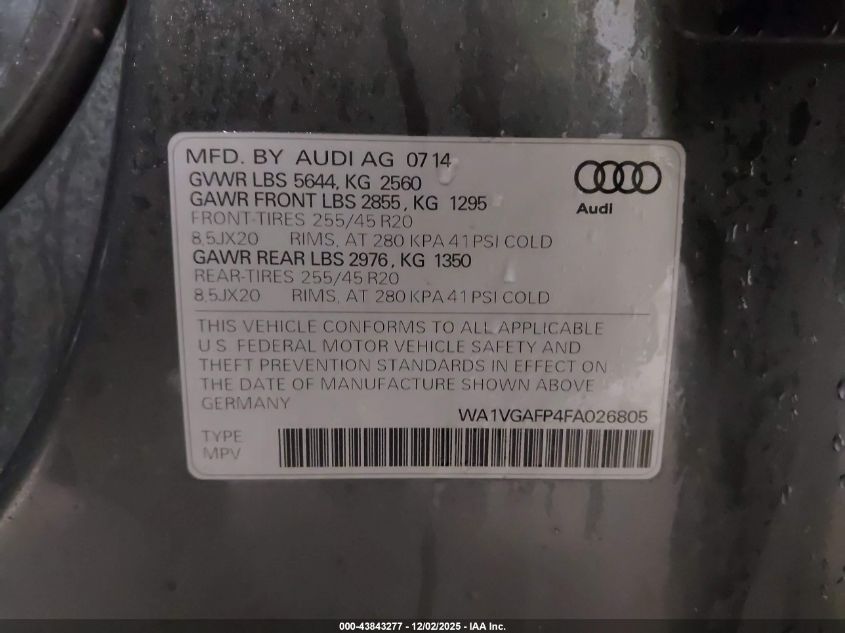 2015 AUDI SQ5 2015 року Бензин, 3.0, Полный привод, vin - WA1VGAFP4FA026805 из США