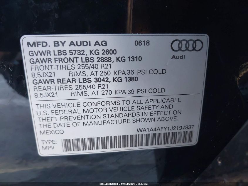 2018 AUDI SQ5 2018 року Бензин, 3.0, Полный привод, vin - WA1A4AFY1J2197837 из США