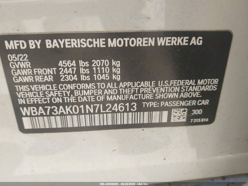 Цвет БелыйЦилиндры 4Привод Полный приводVIN WBA73AK01N7L24613Состояние ЗаводитсяПовреждения Левая сторонаДата аукциона 2025-10-23