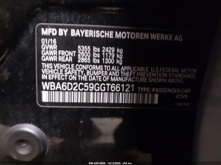2016 BMW 6 SERIES GRAN COUPE 2016 року Бензин, 3.0, Полный привод, vin - WBA6D2C59GGT66121 из США