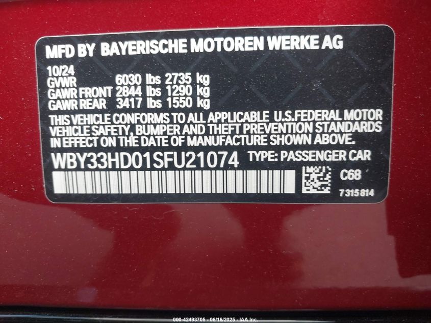 2025 BMW I4 2025 року Электрический, U, Полный привод, vin - WBY33HD01SF****** из США
