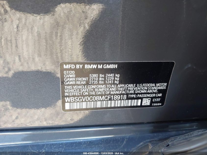 2021 BMW M8 GRAN COUPE 2021 року Бензин, 4.4, Полный привод, vin - WBSGV0C08MCF18918 из США