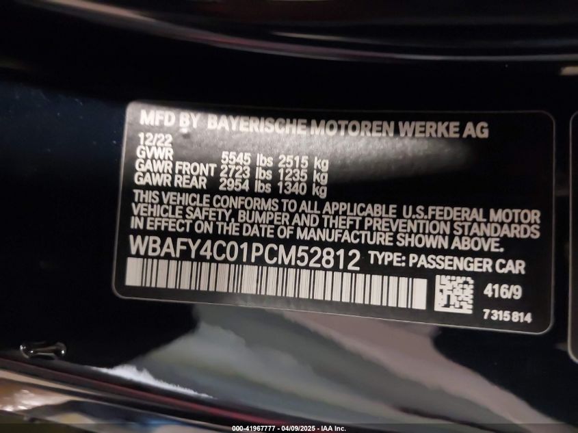 Цвет СинийЦилиндры 8Привод Полный приводVIN WBAFY4C01PC******Состояние НеизвестноПовреждения Передняя или задняяДата аукциона 2025-05-20