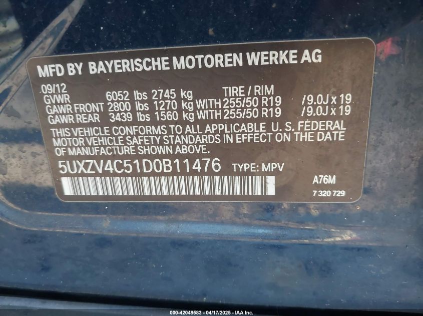 Цвет СинийЦилиндры 6Привод Полный приводVIN 5UXZV4C51D0******Состояние НеизвестноПовреждения Передняя или задняяДата аукциона 2025-10-07