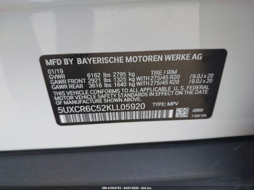 2019 BMW X5 2019 року Бензин, 3.0, Полный привод, vin - 5UXCR6C52KL****** из США