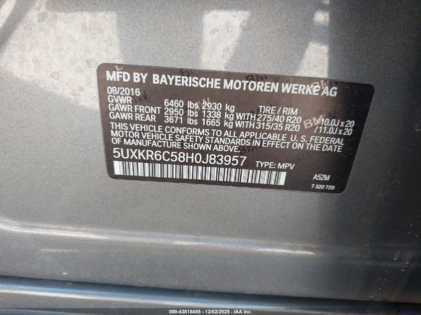 Цвет СерыйЦилиндры 8Привод Полный приводVIN 5UXKR6C58H0J83957Состояние Заводится и едет (проверено)Повреждения Неизвестно AutoRIA
