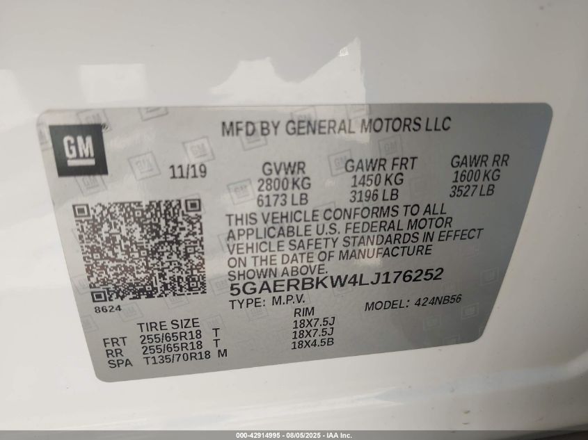 2020 BUICK ENCLAVE 2020 року Бензин, 3.6, Передний привод, vin - 5GAERBKW4LJ176252 из США