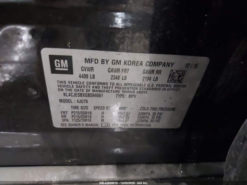 Цвет ЧерныйЦилиндры 4Привод Полный приводVIN KL4CJESBXGB594661Состояние СтационарноПовреждения Передняя левая AutoRIA