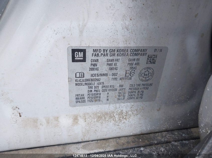Цвет СеребряныйЦилиндры 4Привод Полный приводVIN KL4CJGSB6EB652662Состояние СтационарноПовреждения Передняя праваяДата аукциона 2025-12-16 AutoRIA