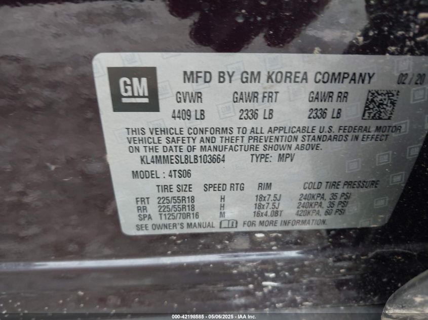 2020 BUICK ENCORE GX 2020 року Бензин, 1.3, Полный привод, vin - KL4MMESL8LB****** из США