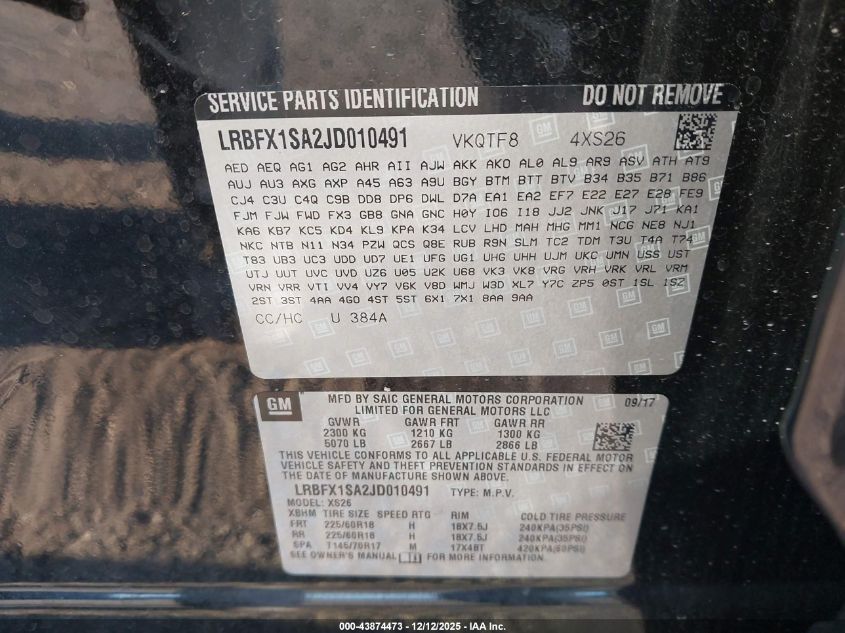 2018 BUICK ENVISION 2018 року Бензин, 2.5, Передний привод, vin - LRBFX1SA2JD010491 из США