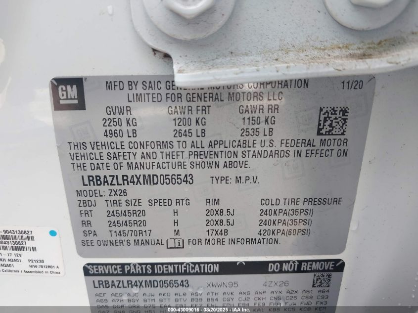 Цвет БелыйЦилиндры 4Привод Передний приводVIN LRBAZLR4XMD******Состояние НеизвестноПовреждения Передняя или задняяДата аукциона 2025-10-01