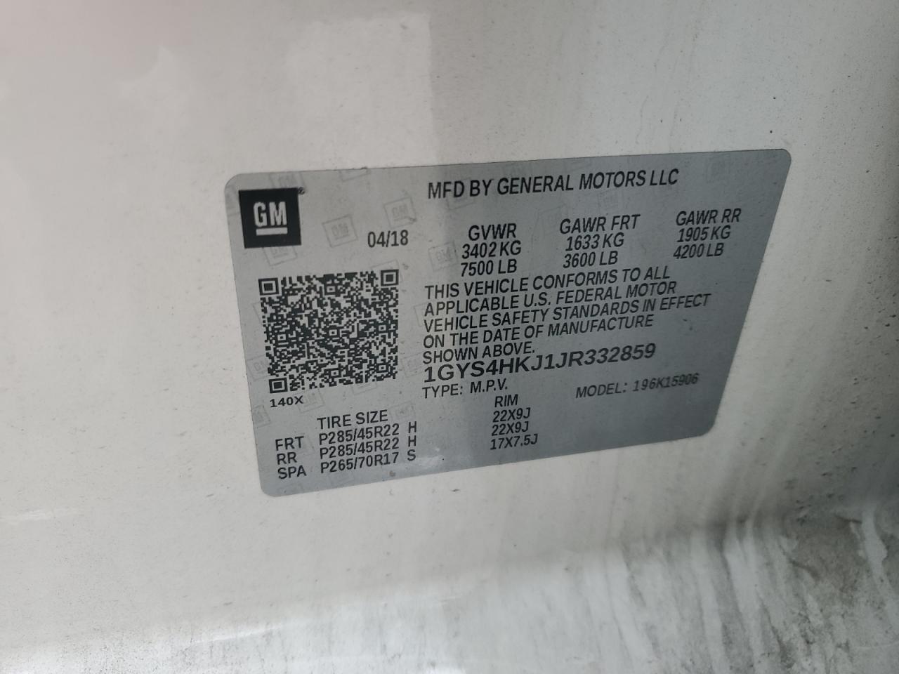 Цвет БелыйЦилиндры 8Привод 4x4 с задним приводомVIN 1GYS4HKJ1JR332859Состояние Заводится и едет (проверено)Повреждения Передняя или задняяДата аукциона 2025-08-20