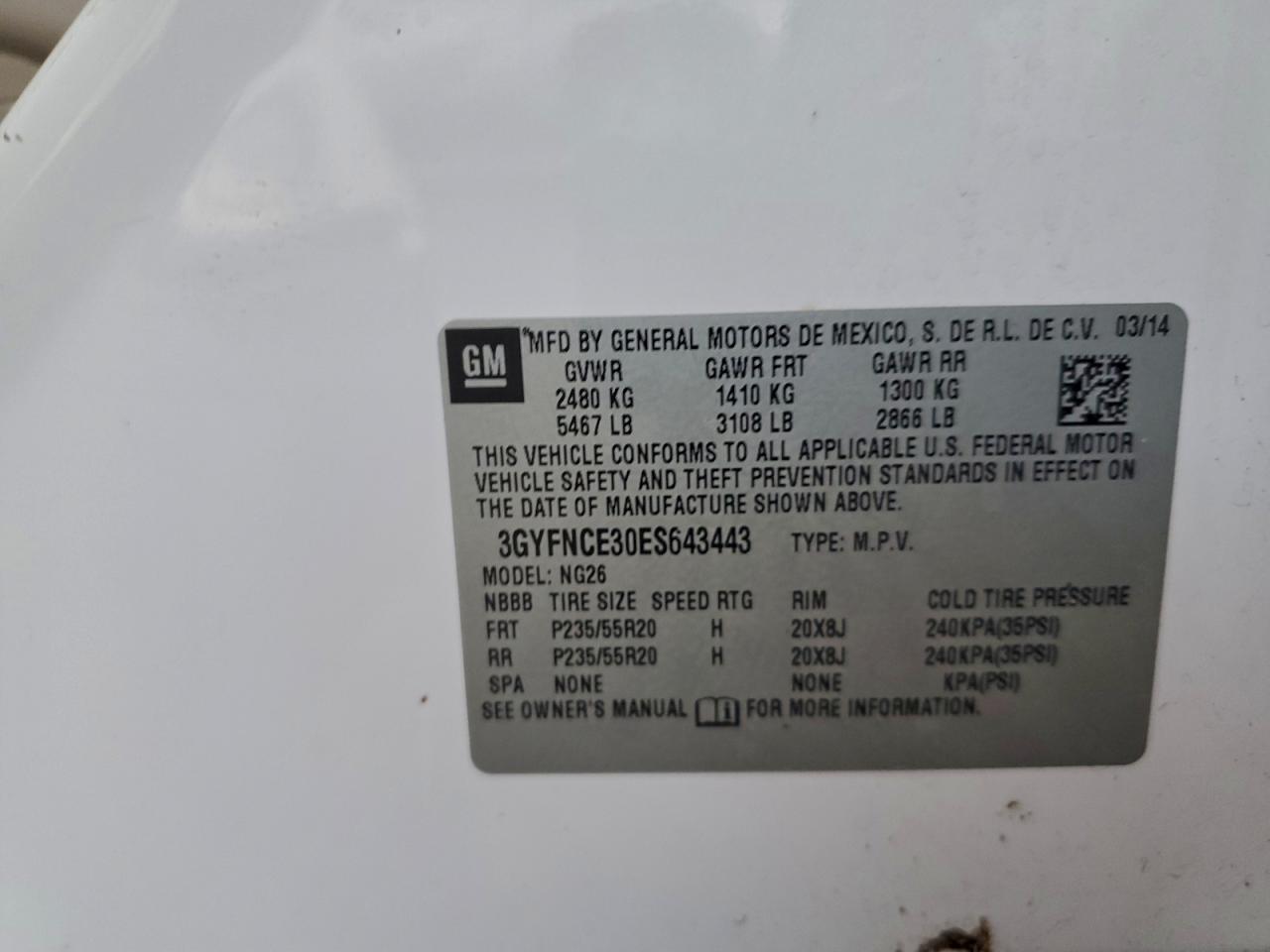 2014 CADILLAC SRX 2014 року Бензин, 3.6, , vin - 3GYFNCE30ES643443 из США