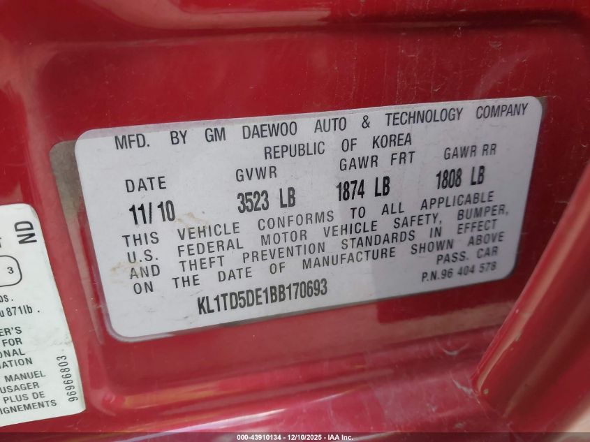 2011 CHEVROLET AVEO LT