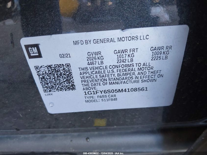 2021 CHEVROLET BOLT EV 2021 року Электрический, U, Передний привод, vin - 1G1FY6S05M4108561 из США