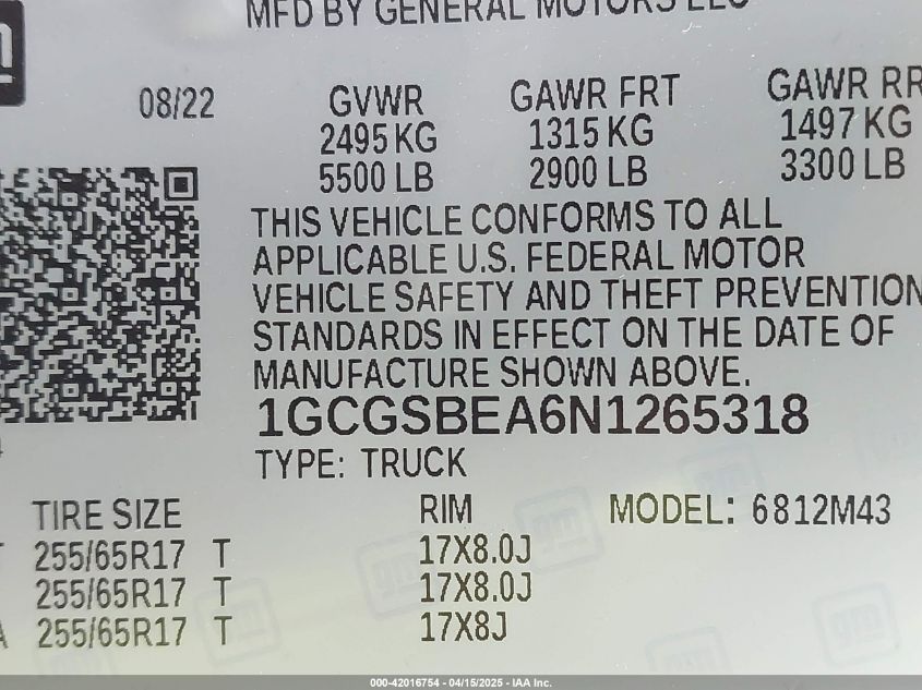 2022 CHEVROLET COLORADO 2022 року Бензин, 2.5, Неизвестно, vin - 1GCGSBEA6N1****** из США