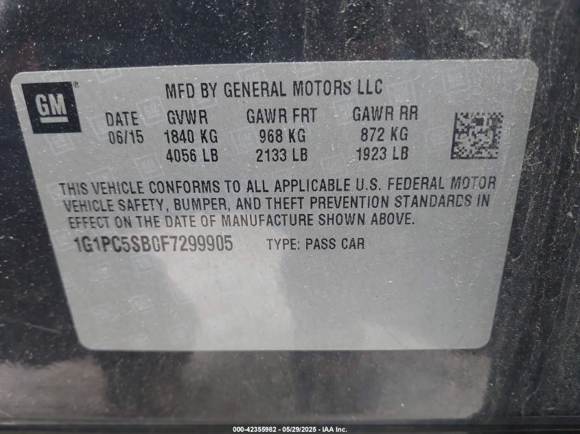 2015 CHEVROLET CRUZE 2015 року Бензин, 1.4, Передний привод, vin - 1G1PC5SB0F7****** из США