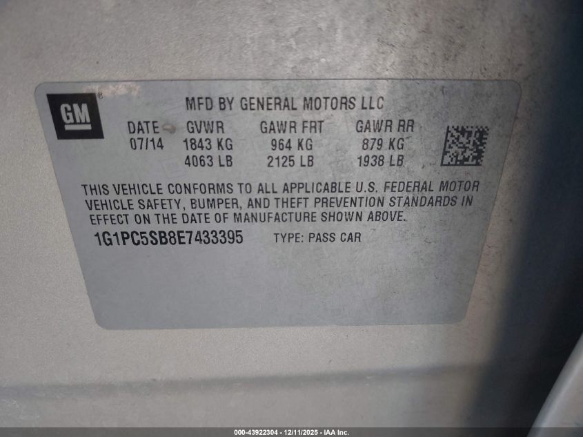2014 CHEVROLET CRUZE 2014 року Бензин, 1.4, Передний привод, vin - 1G1PC5SB8E7433395 из США