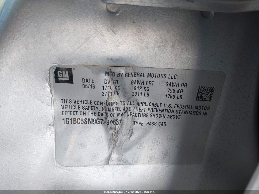 2016 CHEVROLET CRUZE 2016 року Бензин, 1.4, Передний привод, vin - 1G1BC5SM9G7294831 из США