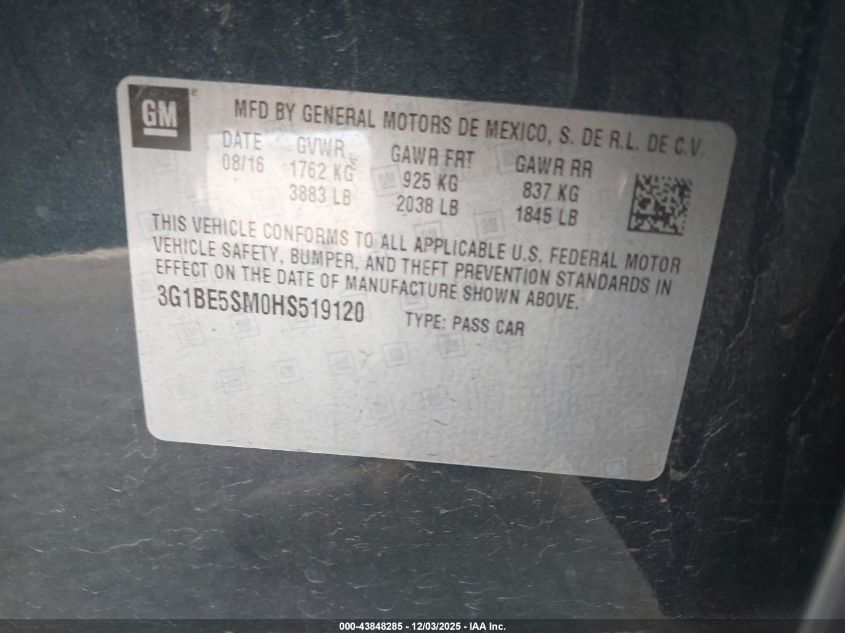 2017 CHEVROLET CRUZE LT