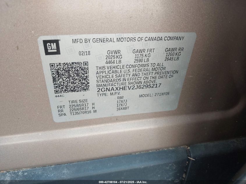 2018 CHEVROLET EQUINOX 2018 року Бензин, 1.5, Передний привод, vin - 2GNAXHEV2J6****** из США