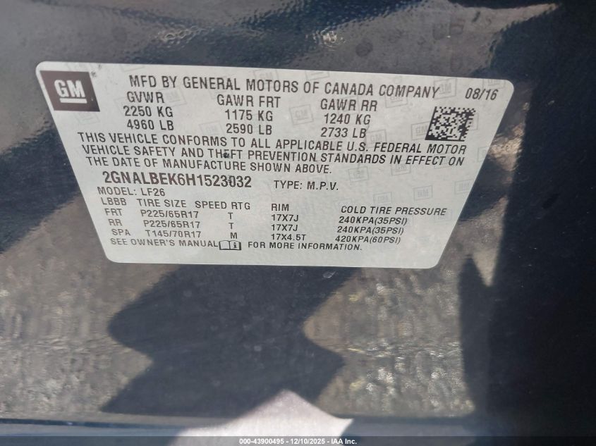 Цвет СинийЦилиндры 4Привод Передний приводVIN 2GNALBEK6H1523032Состояние СтационарноПовреждения Передняя или задняя AutoRIA