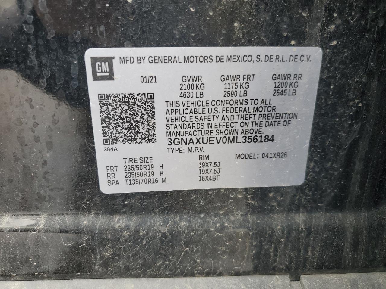 2021 CHEVROLET EQUINOX 2021 року Бензин, 1.5, Полный привод, vin - 3GNAXUEV0ML356184 из США