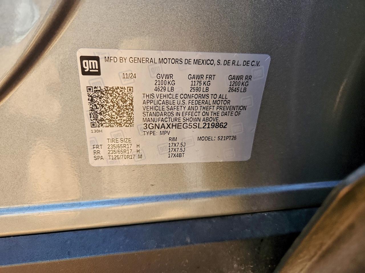 2025 CHEVROLET EQUINOX 2025 року Бензин, 1.5, , vin - 3GNAXHEG5SL219862 из США