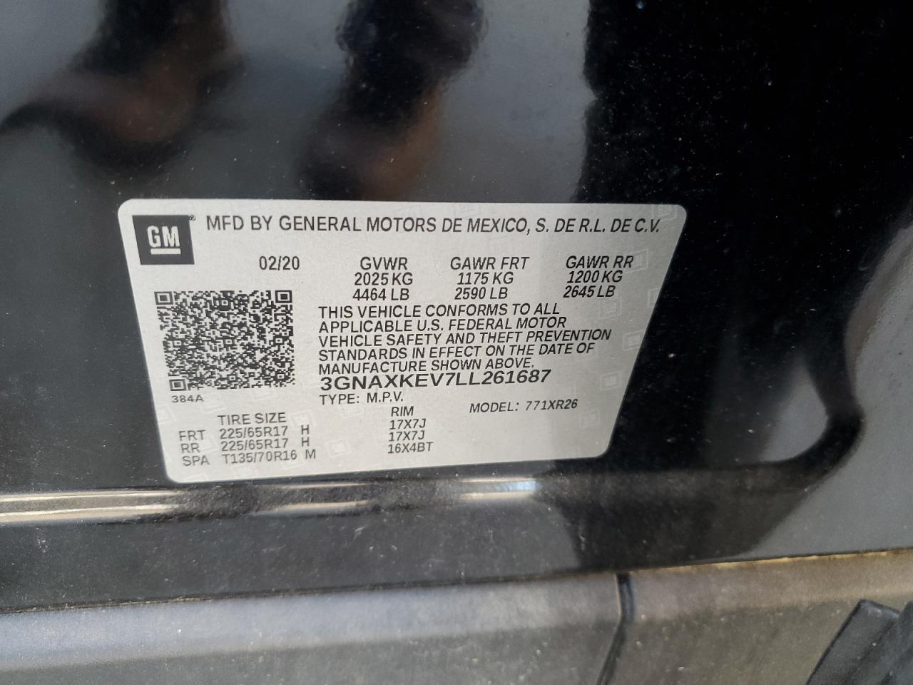 2020 CHEVROLET EQUINOX 2020 року Бензин, 1.5, , vin - 3GNAXKEV7LL261687 из США