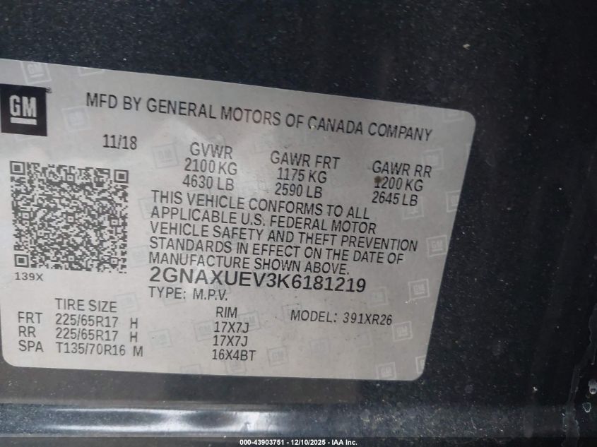 2019 CHEVROLET EQUINOX 2019 року Бензин, 1.5, Полный привод, vin - 2GNAXUEV3K6181219 из США