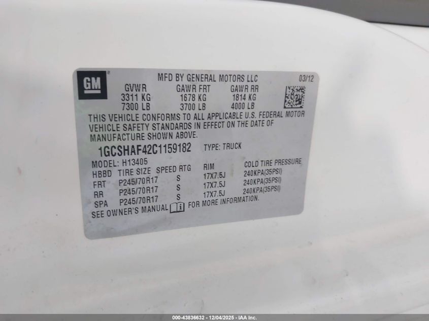Цвет БелыйЦилиндры 8Привод Полный приводVIN 1GCSHAF42C1159182Состояние СтационарноПовреждения По бокам AutoRIA