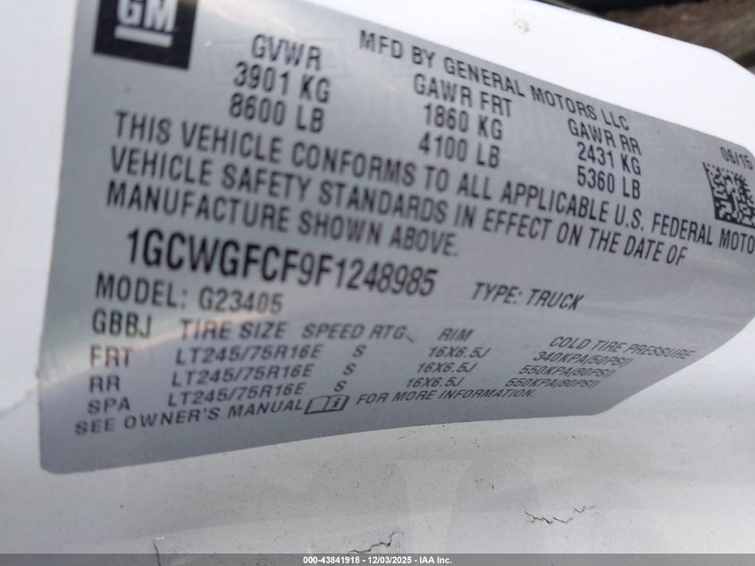 2015 CHEVROLET EXPRESS G3