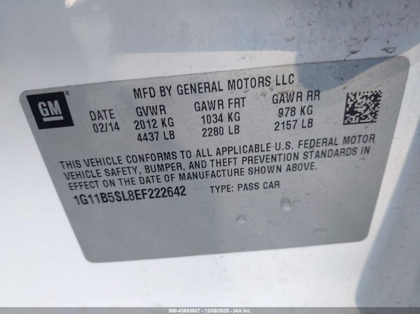 2014 CHEVROLET MALIBU 2014 року Бензин, 2.5, Передний привод, vin - 1G11B5SL8EF222642 из США