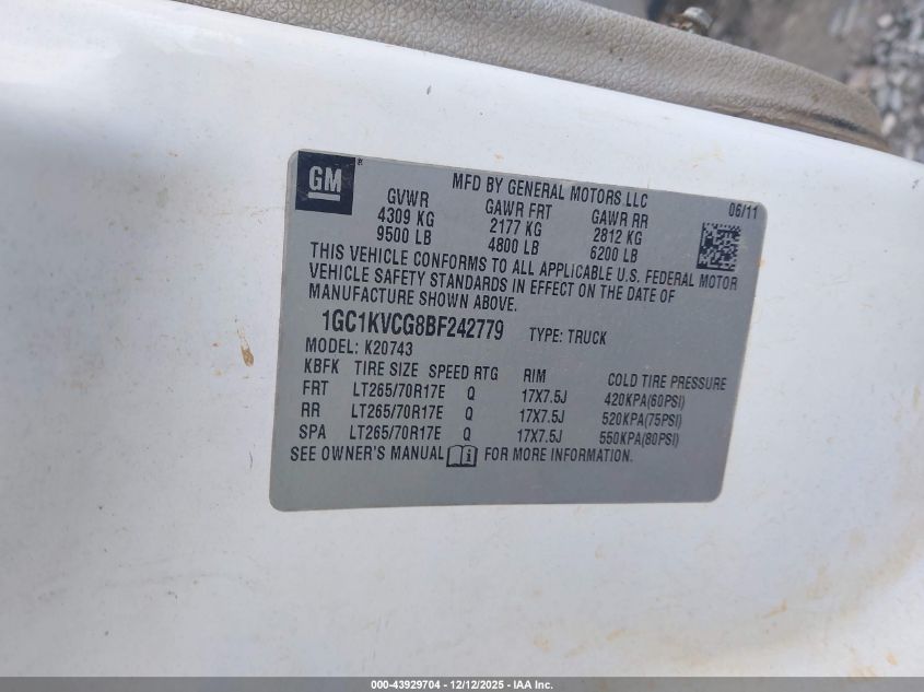 2011 CHEVROLET SILVERADO 2500 2011 року Бензин, 6.0, Полный привод, vin - 1GC1KVCG8BF242779 из США