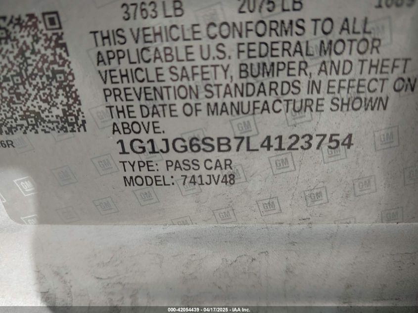 Цвет СеребряныйЦилиндры 4Привод Передний приводVIN 1G1JG6SB7L4******Состояние НеизвестноПовреждения ЗадняяДата аукциона 2025-06-17
