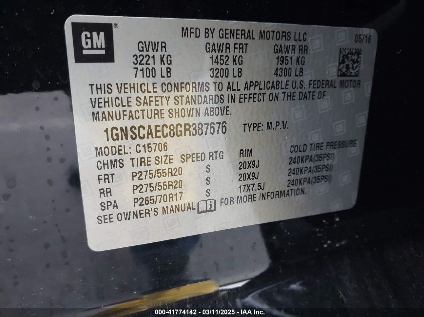 2016 CHEVROLET TAHOE 2016 року Бензин, 5.3, Неизвестно, vin - 1GNSCAEC8GR****** из США