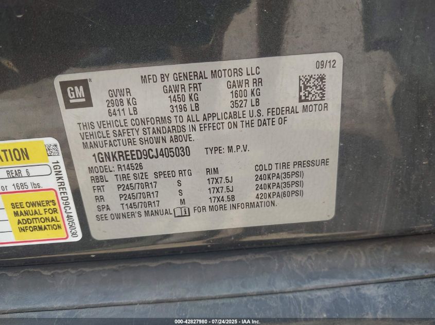 2012 CHEVROLET TRAVERSE LT