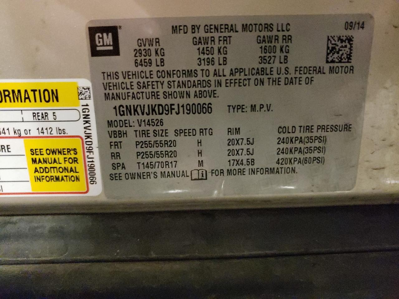 2015 CHEVROLET TRAVERSE 2015 року Бензин, 3.6, Полный привод, vin - 1GNKVJKD9FJ190066 из США