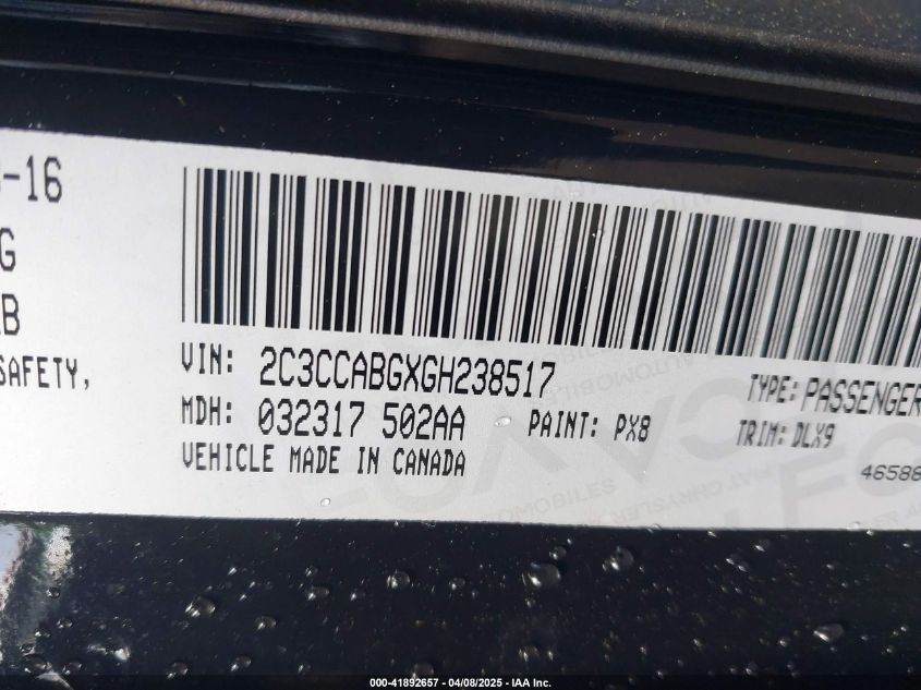 Цвет ЧерныйЦилиндры 6Привод Задний приводVIN 2C3CCABGXGH******Состояние НеизвестноПовреждения Передняя праваяДата аукциона 2025-06-18
