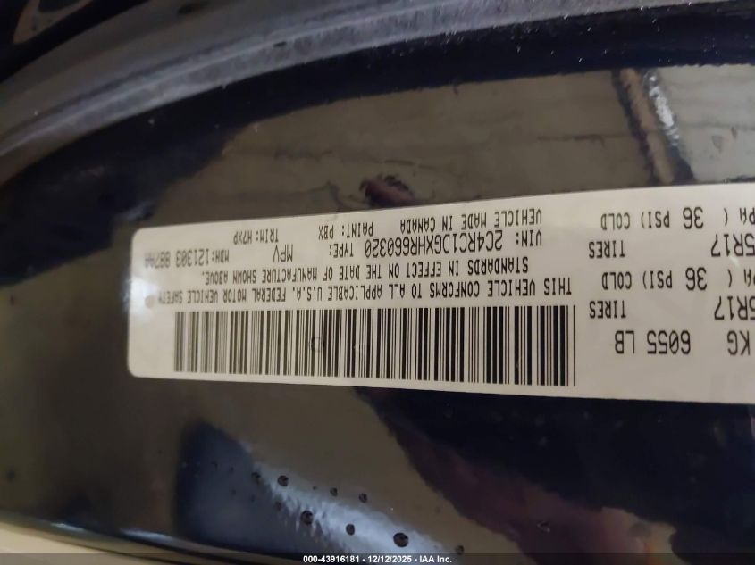 Цвет СинийЦилиндры 6Привод Передний приводVIN 2C4RC1DGXHR660320Состояние СтационарноПовреждения Передняя или задняя AutoRIA