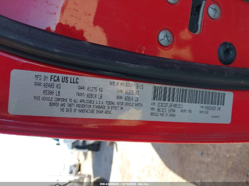 2015 DODGE CHALLENGER 2015 року Бензин, 6.4, Задний привод, vin - 2C3CDZFJ6FH851511 из США