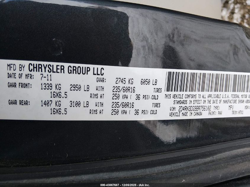 2011 DODGE GRAND CARAVAN CREW