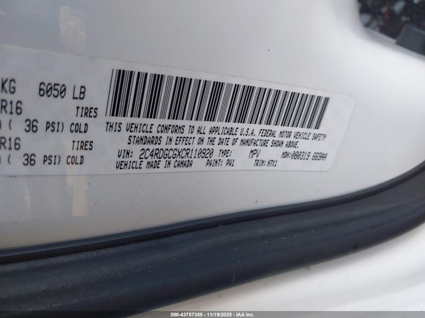 Цвет БелыйЦилиндры 6Привод Передний приводVIN 2C4RDGCGXCR110920Состояние СтационарноПовреждения Передняя или задняя AutoRIA
