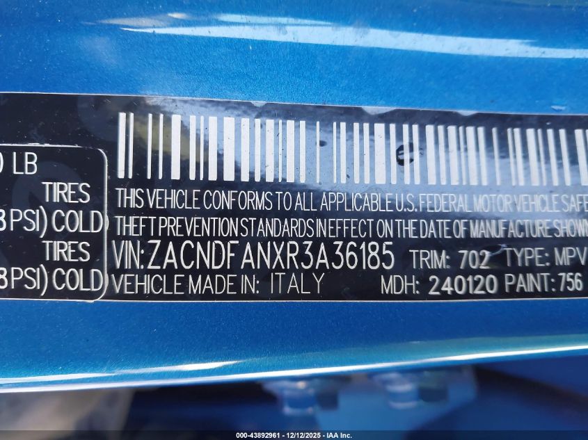 Цвет СинийЦилиндры 4Привод Полный приводVIN ZACNDFANXR3A36185Состояние Заводится и едет (проверено)Повреждения Передняя или задняя AutoRIA